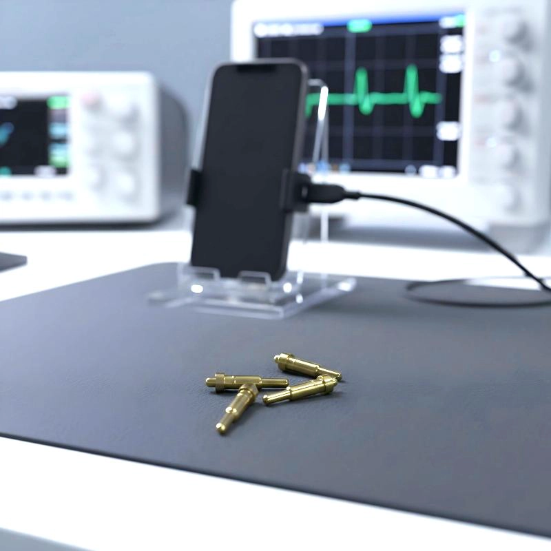 ---Broche Pogo (connecteur) pour établir une connexion (généralement temporaire) entre deux cartes de circuits imprimés pour le chargement, la localisation, les applications de batterie, de semi-conducteurs et d'interconnexion ;