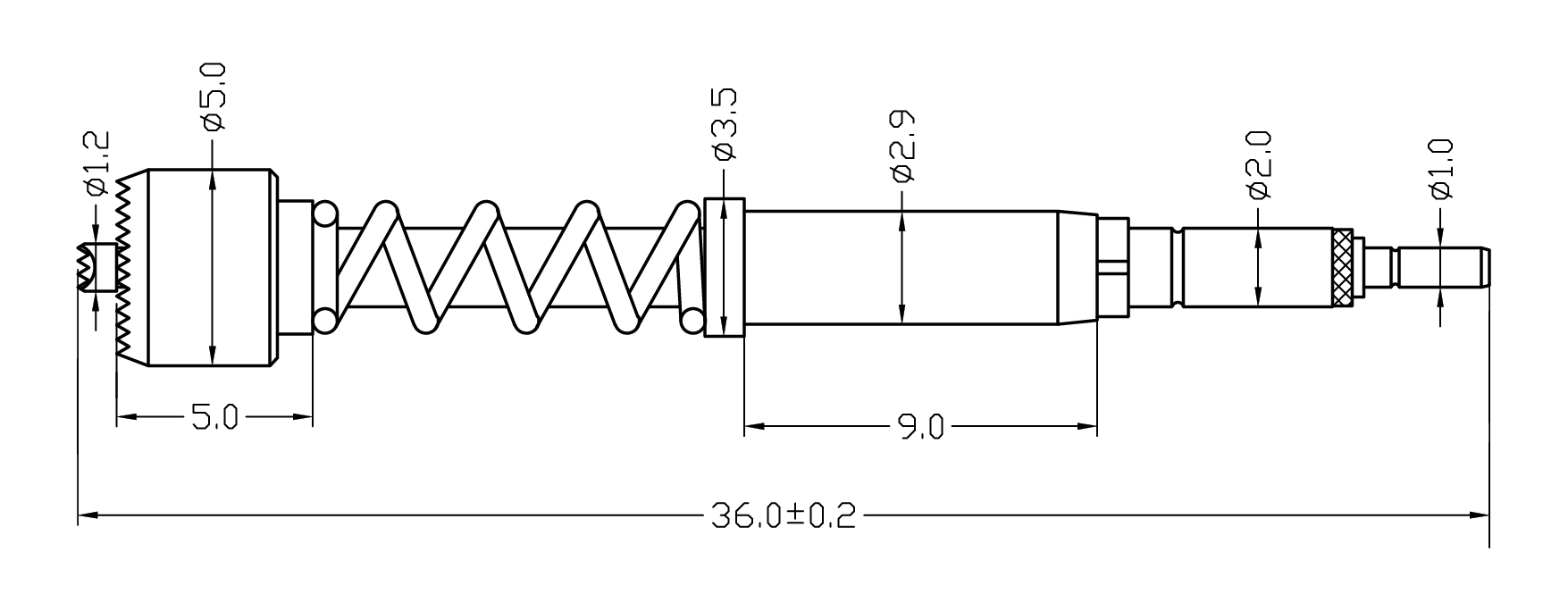 ---Подпружиненный контакт (одиночный) для тестирования печатных плат, ICT, FCT и т. д.;